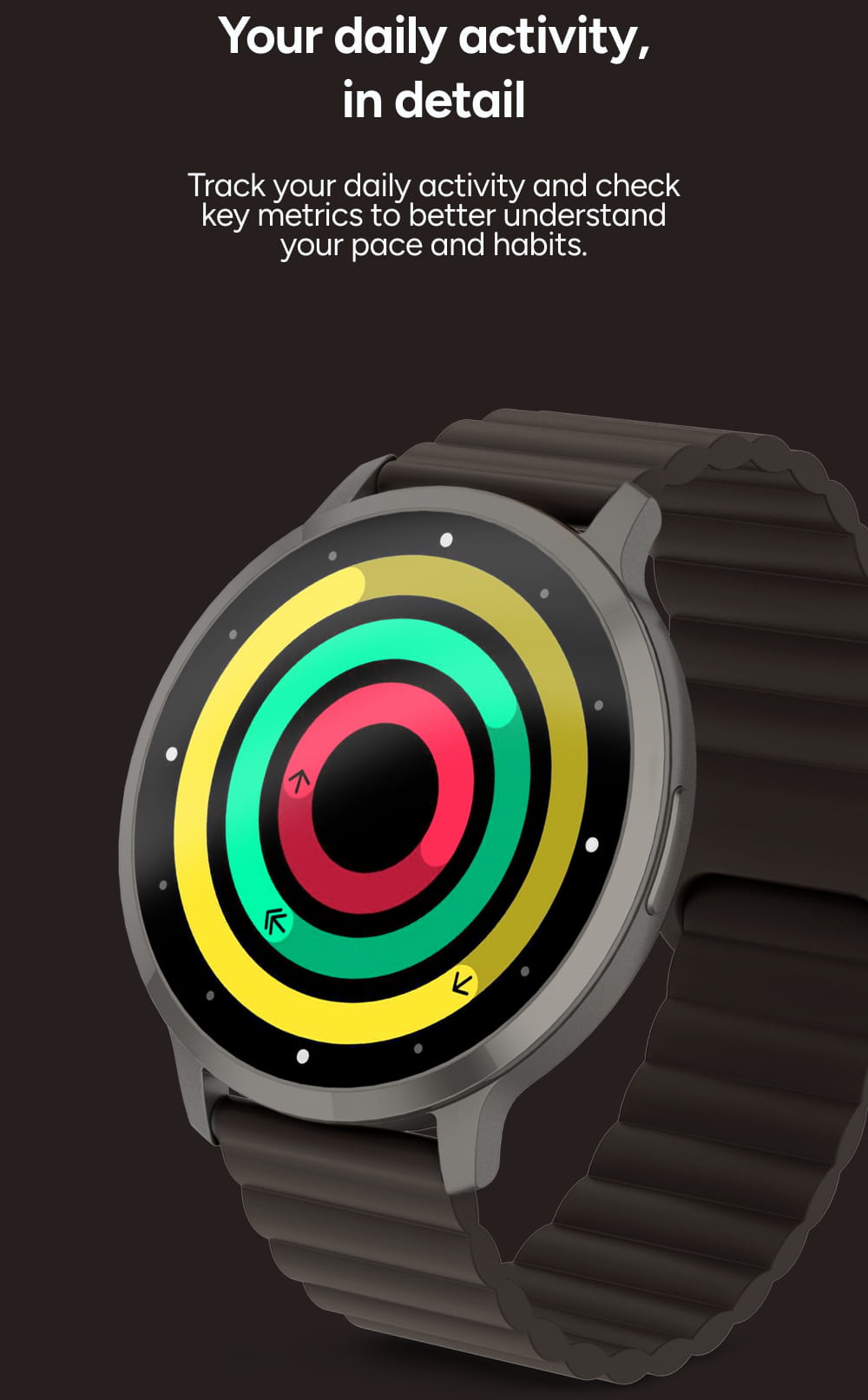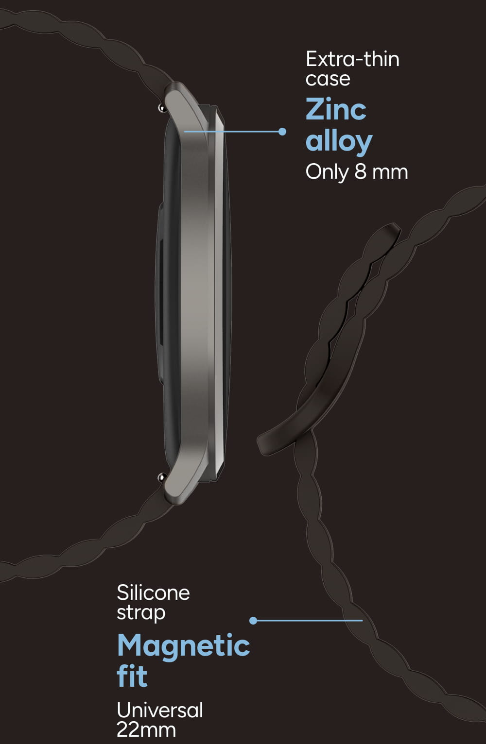 Inovativní systém Magnetic fit přináší naprostou svobodu při nasazování hodinek. Silikonový řemínek se díky integrovaným magnetům přizpůsobí vašemu zápěstí s milimetrovou přesností během jedné sekundy. Je to nejpohodlnější způsob zapínání, který drží pevně a spolehlivě za každé situace.