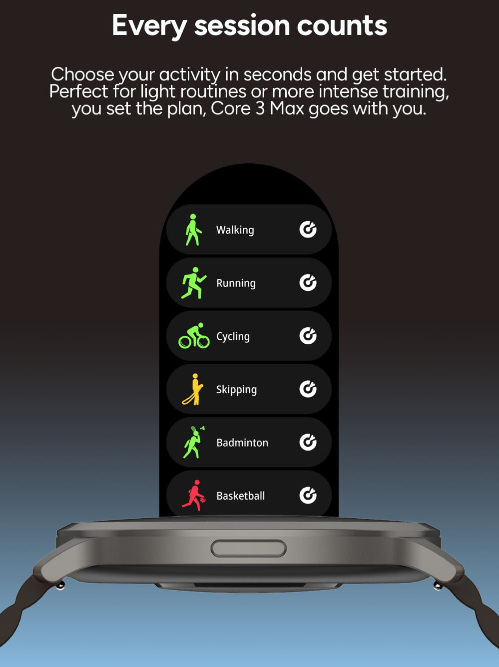 S KSIX Core 3 Max máte svůj progres pod neustálou kontrolou. Hodinky jsou připraveny na lehké ranní protažení i intenzivní sportovní trénink podle vašeho vlastního plánu. Stačí pár sekund na výběr aktivity a můžete se okamžitě pustit do zdolávání svých cílů.