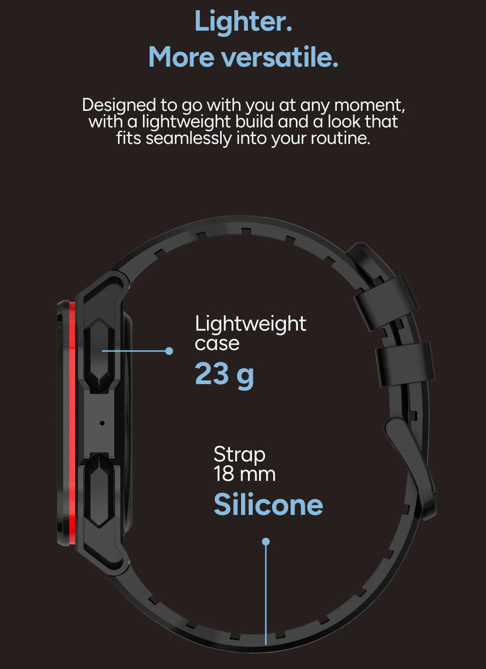 Hodinky Zenthium jsou navrženy tak, aby vás neomezovaly při žádné aktivitě. Díky ultra lehkému pouzdru o hmotnosti pouhých 23 g o nich na zápěstí nebudete ani vědět, což z nich dělá ideálního společníka pro sport i celodenní rutinu.