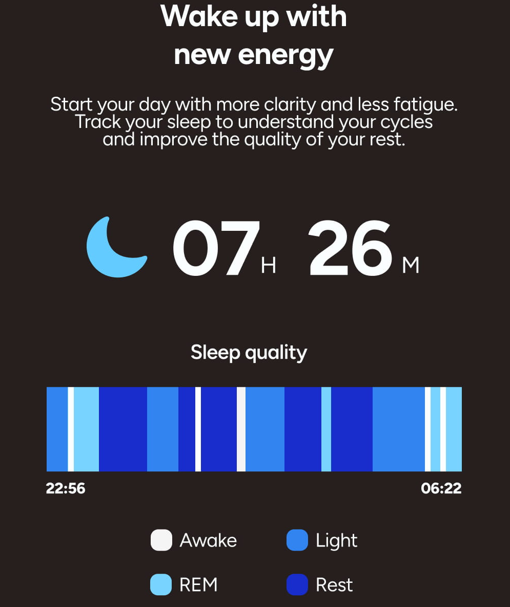 Mějte dokonalý přehled o fázích REM, lehkém a hlubokém spánku. Hodinky přesně zaznamenávají dobu strávenou regenerací, což vám pomůže optimalizovat váš denní režim. Získejte více energie díky lepšímu pochopení svých nočních návyků.