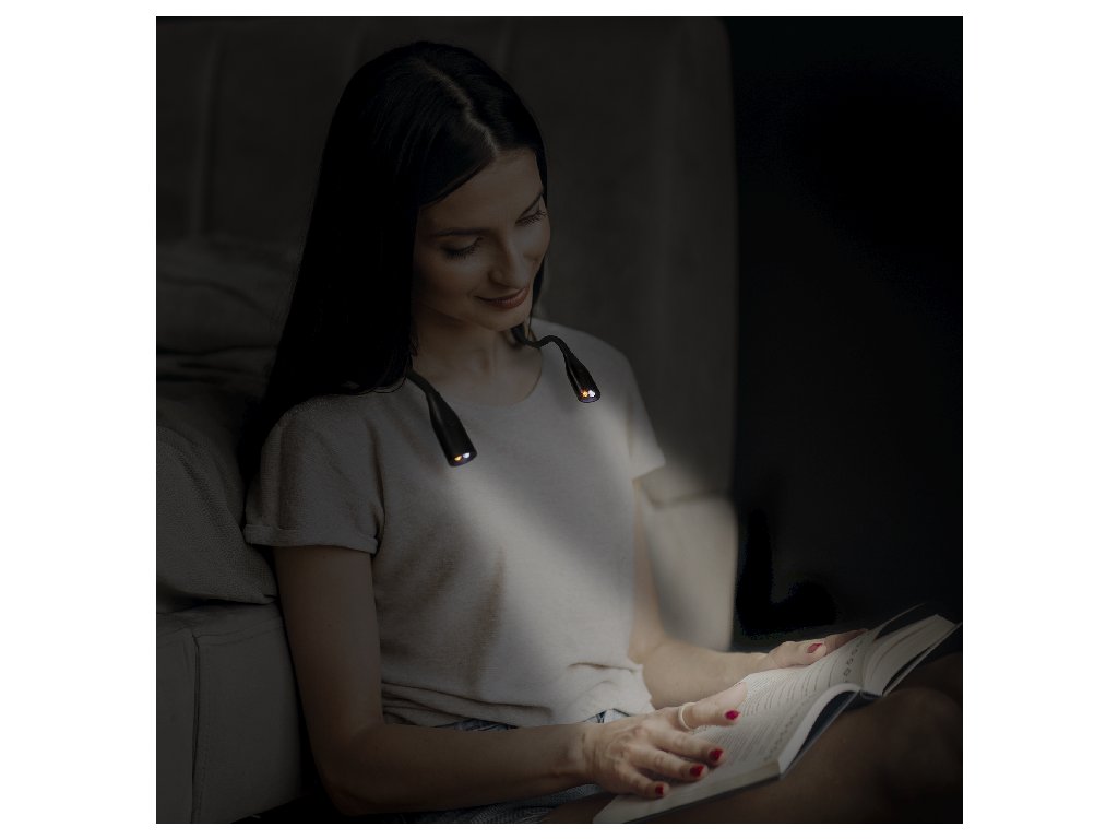 Zapomeňte na nepraktické baterky nebo stolní lampy. Tato lehká a pohodlná lampička se nosí kolem krku a nechává vám obě ruce volné. Ideální pro čtení knih, práci na drobných detailech, ruční tvoření nebo večerní relaxaci bez narušení pohodlí.
