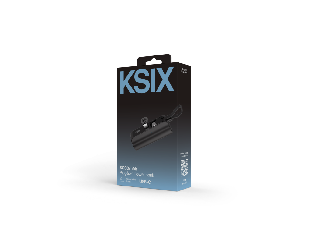 Ksix powerbanka kapesní 5,000mAh s integrovaným kabelem USB-C na USB-C a stojánkem + kabel USB-A na USB-C