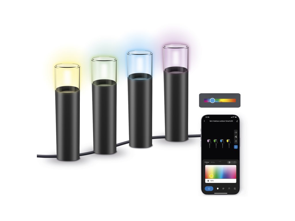 Ksix sada 4 venkovních majáků, WiFi + aplikace Tuya Smart, 12W, 200lm, RGBWIC, IP65