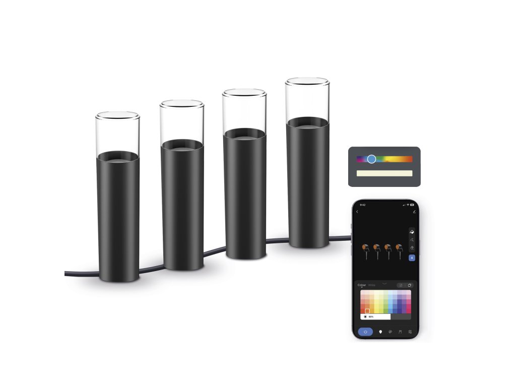 Jedna sada obsahuje 4 chytrá světla, ale pokud potřebujete víc světla nebo delší pokrytí, můžete snadno připojit další sadu a zdvojnásobit efekt. Celkem tak získáte až 8 světel v jednom propojení – ideální pro velké zahrady, dlouhé příjezdové cesty nebo členité prostory.