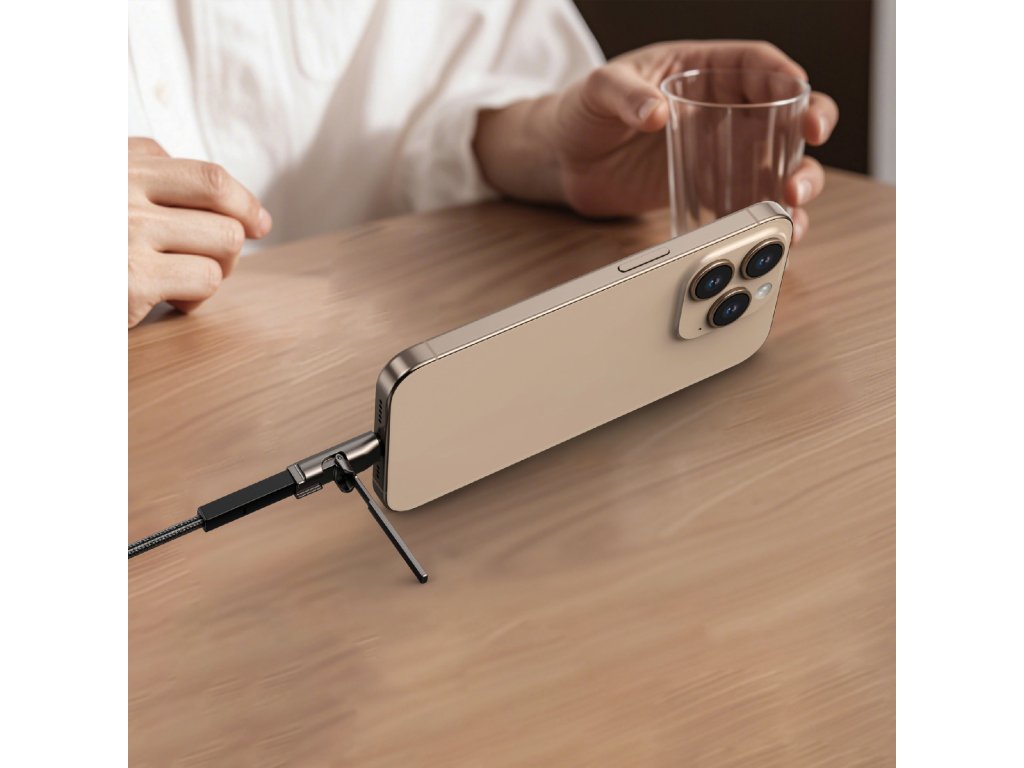 KSIX Ultra rychlý nabíjecí kabel se stojánkem, 60W, USB-C na USB-C, Power Delivery, kompatibilní s notebooky, opletený, 1 m, černý