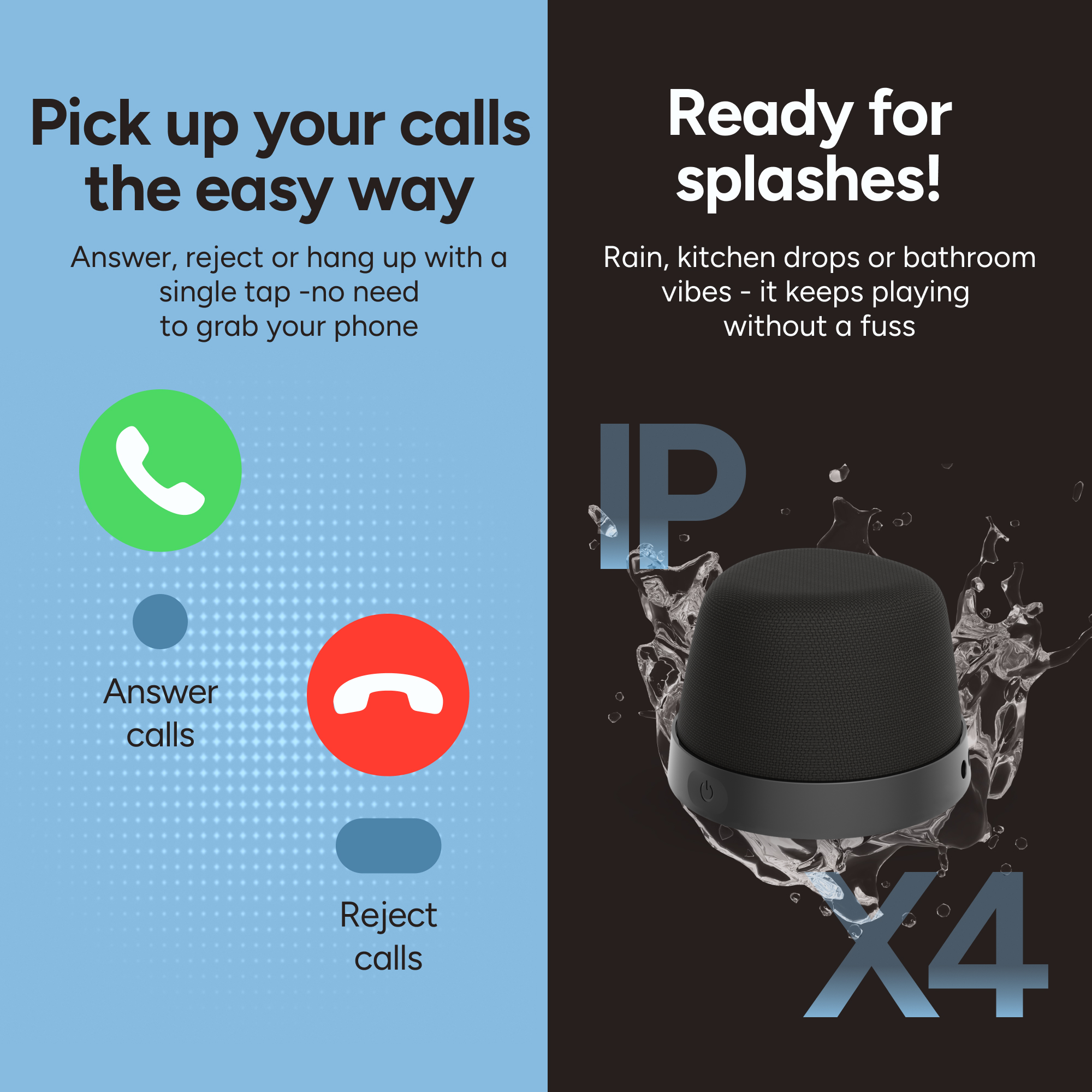 Krytí IPX4 chrání reproduktor před stříkající vodou ze všech směrů. Bez obav jej můžete používat v dešti, v kuchyni nebo v koupelně. Hudba i hovory zůstanou nerušené i v náročnějším prostředí.