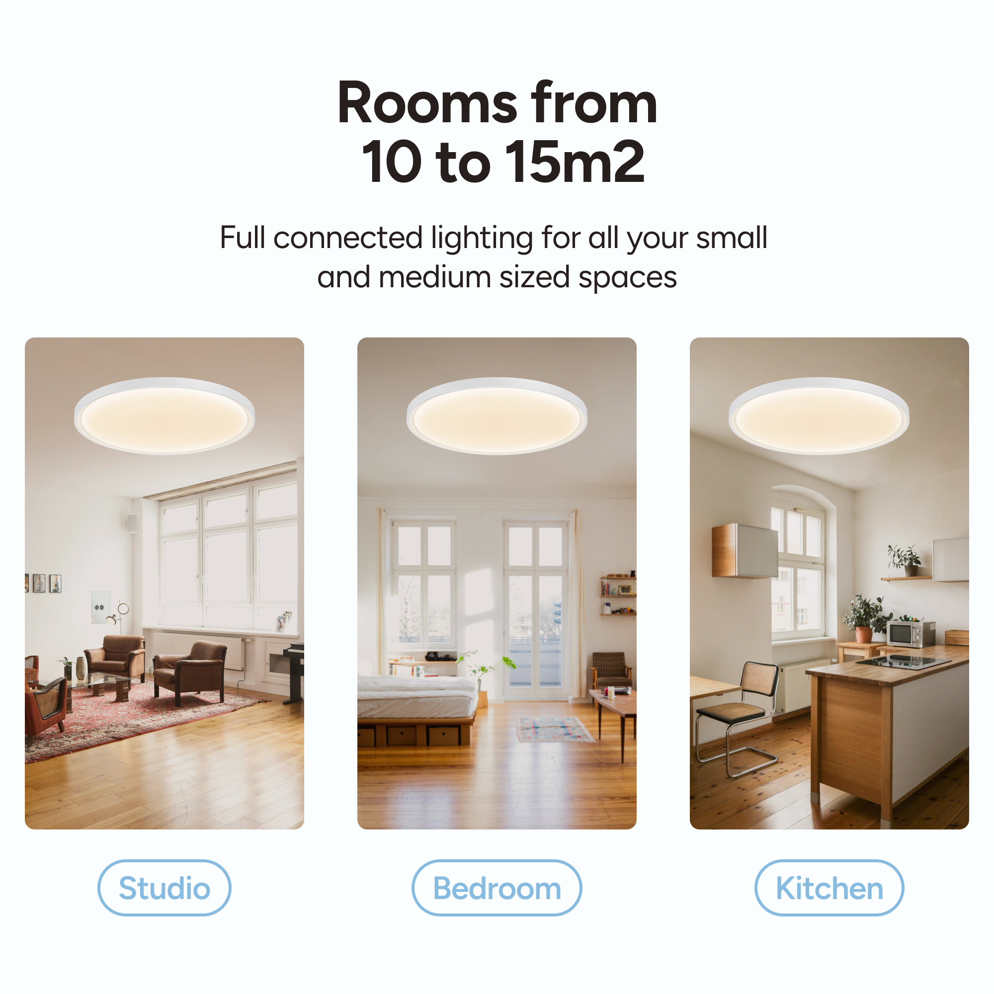 Jednoduché bílé provedení v kruhovém tvaru se hodí prakticky do každého interiéru. Světlo je navrženo tak, aby ve dne působilo nenápadně a nerušilo vzhled místnosti, zatímco v noci plní svou hlavní funkci barevného i bílého svícení.